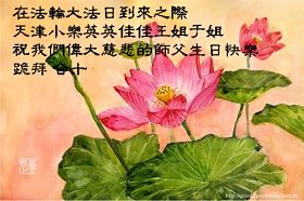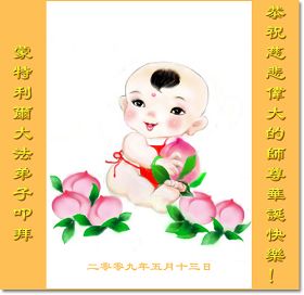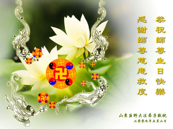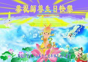 我是一个常人,对大师的“真、善、忍”最高佛法深有感触,也是对本人心灵深处一个很好净化。对此有很好的感触。望李大师大法发扬光大。祝您生日快乐!