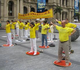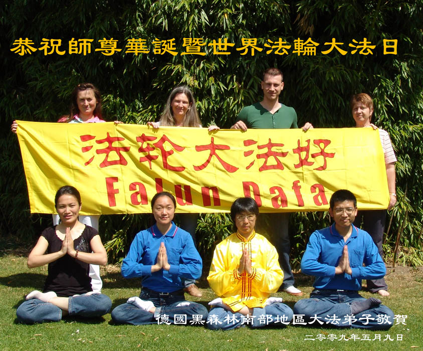 ![]() 德国西南部法轮功学员集体炼功迎接法轮大法日 |