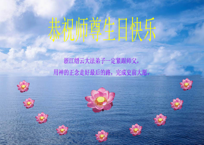 千言万语万语千言汇成一句话:坚信师父坚信大法坚如磐石。无论环境千变万化,心中只存唯一一念:听师父的话,做师父的真修弟子。师父您就放心吧!您的弟子们携全家及明白真相的亲戚、朋友、同事、邻居向伟大慈悲的师父跪拜:再谢恩师慈悲救度!