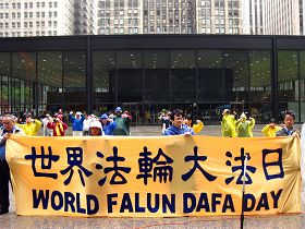 ![]() 二零零九年五月十三日,法轮功学员在芝加哥市中心联邦广场炼功,庆祝“法轮大法日” |