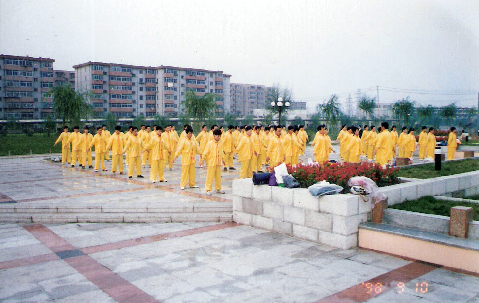 【明慧网二零零九年五月十九日】这是一九九八年沈阳大法弟子在沈阳夏宫广场的炼功场面。(9月10日的照片是在夏宫附近,9月11日的照片是在夏宫门前)
