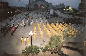 历史图片:近万名法轮大法修炼者在山东省体育中心炼功