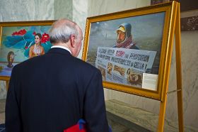 据这次国际美展主办方的负责人张女士介绍,两天来国会大楼里前来观看美展的要员很多,都对美展揭示的内涵,特别是法轮功遭受的残酷迫害感到非常震撼。
