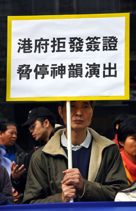 数十名买了神韵票的观众下午自发到入境处前,抗议港府无理拒发演出签证给神韵团员。他们中有不少是从海外来的神韵迷,其中包括特意从纽约飞到香港的李娟。她于二十五日抵港后才得知神韵被迫取消,感到非常失望。她说,神韵晚会在全球都很受欢迎,自己在美国看了觉得非常好,所以想介绍大陆亲戚一起来香港看。