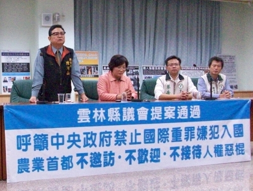 ![]() 云林县议会一致通过禁止人权恶棍来台,诚信联盟总召陈河山呼吁敦促立法院应立法制止这些人权恶棍来台,尊重民意。 |