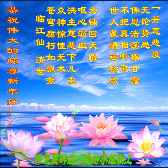 新年到来之际,您的弟子恭祝慈悲伟大的师尊新年快乐!并让师尊放心,弟子会听师父的话,做好三件事,助师正法,救度众生。完成史前大愿。