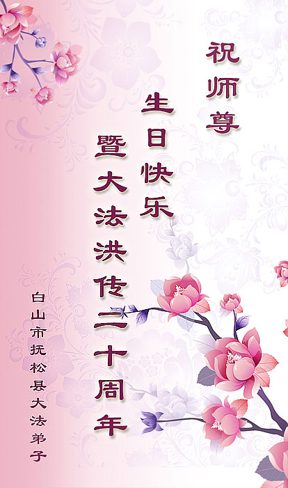 【明慧网二零一二年五月十日】二十年前的五月,李洪志师父在中国长春将法轮大法公开传出于世,二十年后的今天,法轮大法洪传全球,亿万修炼者在大法“真善忍”的指导下道德升华,获得身心健康。十三年来,每年的五月十三日,世界各地的法轮大法弟子,都向明慧网寄来贺卡贺词,庆祝“世界法轮大法日”,恭贺师尊华诞。这里是明慧编辑部已整理出来的部份来自中国大陆华东地区大法弟子的贺卡、贺信。