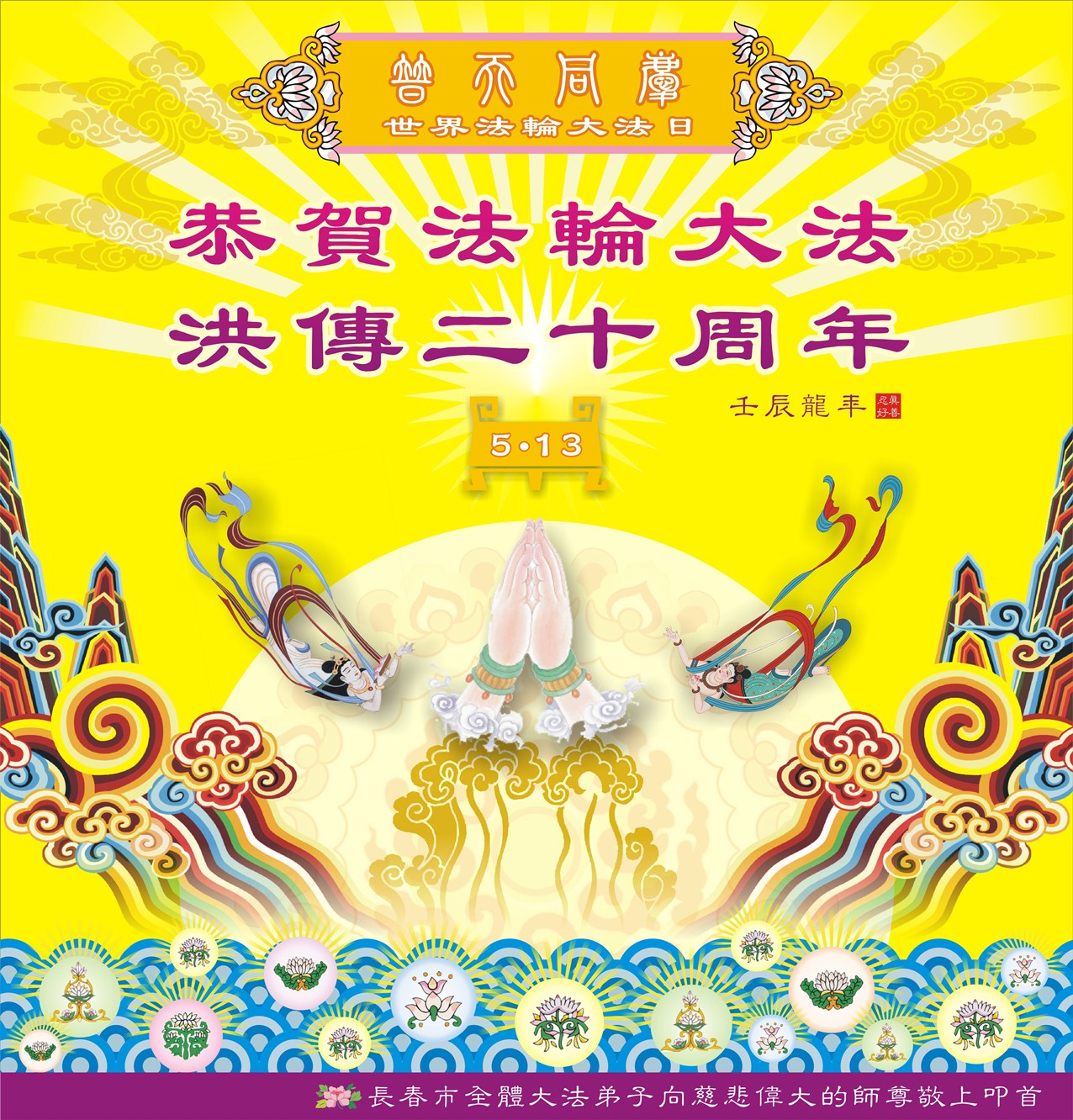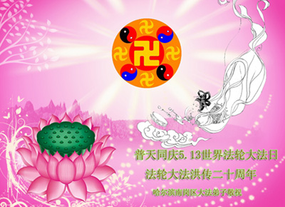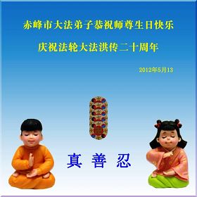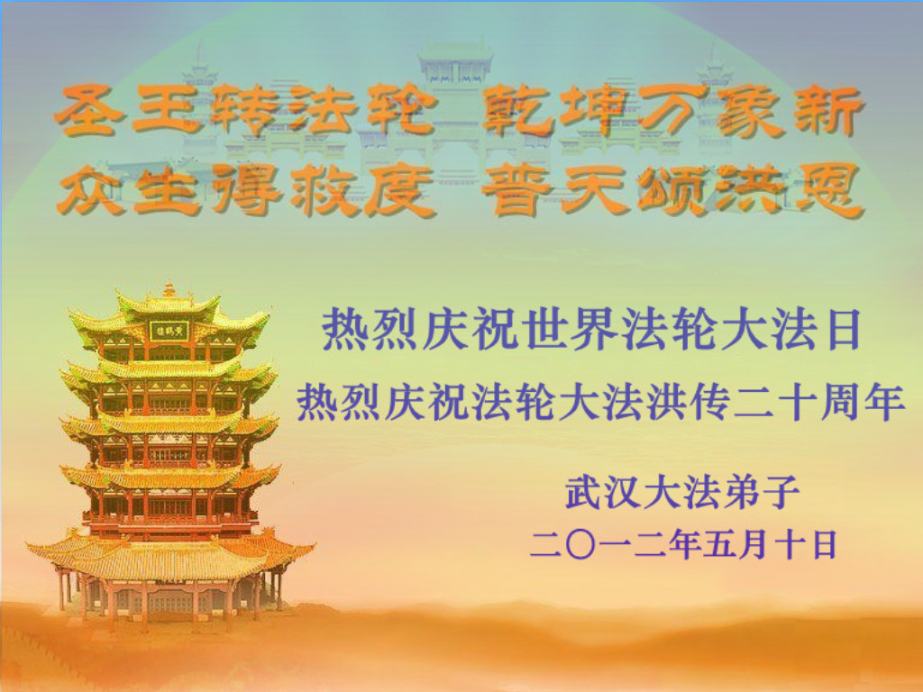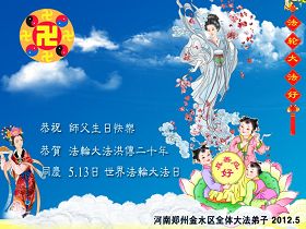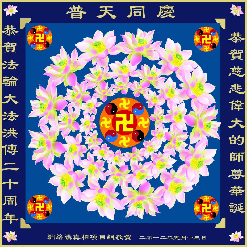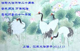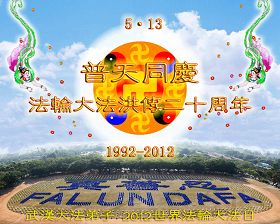 【明慧网二零一二年五月十四日】二十年前的五月十三日是历史见证神奇的开始。五千年的中华神传文化铺垫后,冥冥之中人们等待的、期盼和寻觅的人成神的通天之路开始在世人面前展开——一九九二年李洪志先生第一次公开将法轮修炼大法传给了世人。大法洪传世间二十载始终伴随着神迹,只有经历了净化、重生和被救度的生命才能真正感悟到法轮大法的殊胜和神圣。