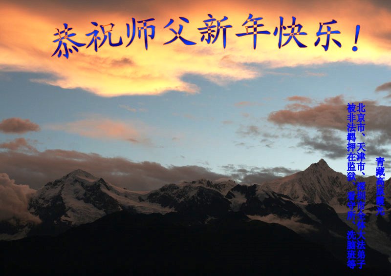 我是焦作地区大法弟子,代表焦作地区的大法弟子们和觉醒世人借此元旦佳节之际,祝贺我们慈悲伟大的师父元旦佳节快乐!