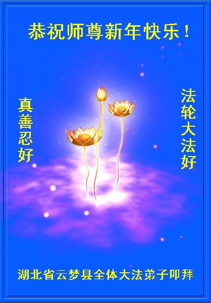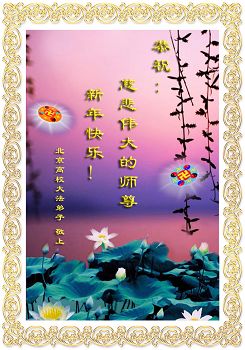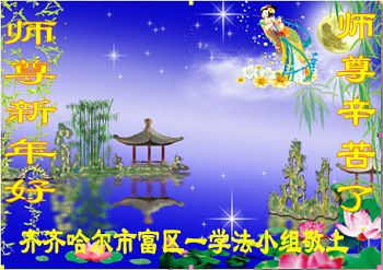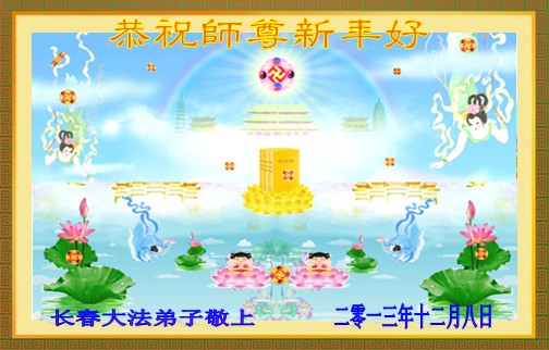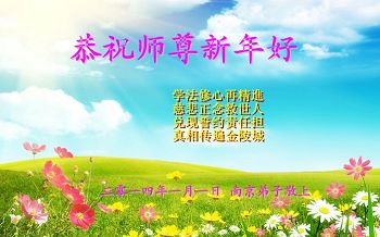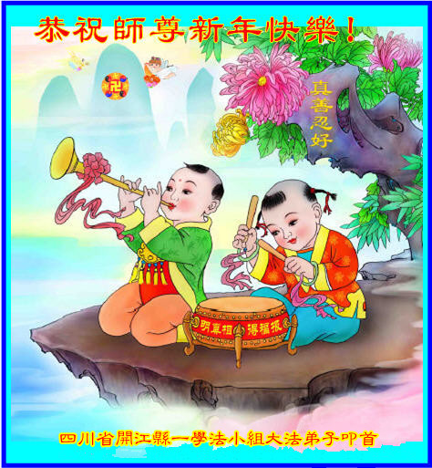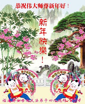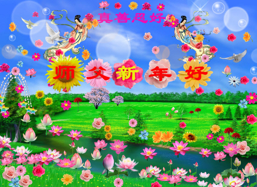 师尊好!时间飞逝,转眼進入新的一年,我们非常想念师尊!祝师尊新年快乐!能成为大法弟子,我们感到非常荣耀和幸福,我们不忘自己的使命,每天讲真相救众生,努力做好三件事。彼此沟通、互相配合、共同精進,圆满随师还。