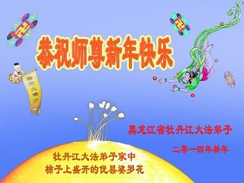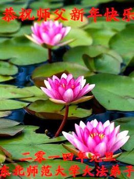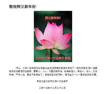 大庆东风新村一区、八区、第八采油厂全体大法弟子向伟大的师尊拜年,祝师父2014年元旦快乐!