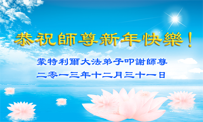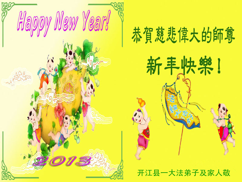 恭贺师尊二零一四年正法一帆风顺!感谢师尊救度之恩,我们一定紧跟正法進程,抓紧讲清真相,反迫害,除邪魔,开创出崭新的天地。 中国人民防空系统大法弟子 二零一三年十二月二十四日