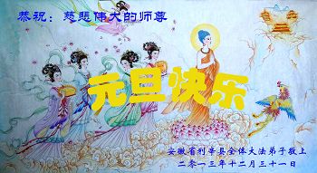 在新的一年里,我们一定倍加珍惜师尊为我们大法弟子及众生延续来的时间。一定在做好三件事中不断精進修好自己,互相配合,利用各自的条件救度更多的众生,完成自己的使命,决不辜负师尊的殷切希望,紧随师父走好最后的路。