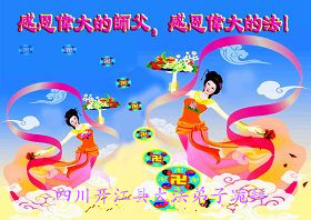弟子感恩师尊慈悲救度!弟子在生生世世的轮回转世中,苦苦等待了几千年,终于等到了师尊来人间洪传宇宙大法,给了弟子同化大法的机会,弟子一定珍惜这千载难逢的神圣机缘,修好自己,不忘助师正法、救度众生的神圣使命,利用一切机会唤醒那些被邪党毒害的生命,给他们一个选择美好未来的机会,不要使他们随着邪党的解体做了陪葬品。