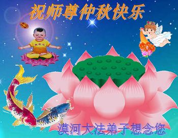 我们庆幸自己能够有如此殊荣,向远隔重洋的李大师恭祝中秋节快乐,向伟大慈悲的李大师献上我们永远的感恩!冥冥之中似乎等待了千万年,直到我们了解了大法的真相,做了“三退”,我们才如梦方醒,从中共邪党蛊惑欺骗的漩涡中跳了出来,原来自己一直以来挣扎于沼泽地中苦苦等待的就是这个!我们明白了怎样做人,怎样生活,心中充满了希望与阳光!我们由衷的感恩李大师!感恩李大师救度了我们!