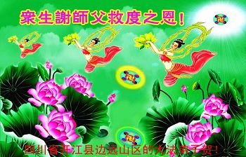 尊敬的李大师您好!我们代表所有的亲朋好友感谢您对我们的慈悲救度,如果不是您让您的弟子给我们讲真相,我们现在还蒙在鼓里,受着邪党的愚弄,最后作了邪党的牺牲品,堕入万劫不复的境地,永无出头之日!请李大师放心,我们一定要将邪党的丑行曝光于天下,让更多的民众看清邪党的丑恶嘴脸,让善良的人们都能明白真相得救度。跪谢李大师救度大恩!