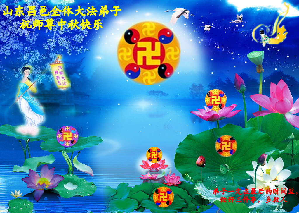 在中国传统的中秋佳节来临之际,我们八十多位明真相得福报的生命感恩大法、感恩慈悲伟大师尊的救度与呵护!共同祝愿慈悲伟大的师尊中秋节快乐!
