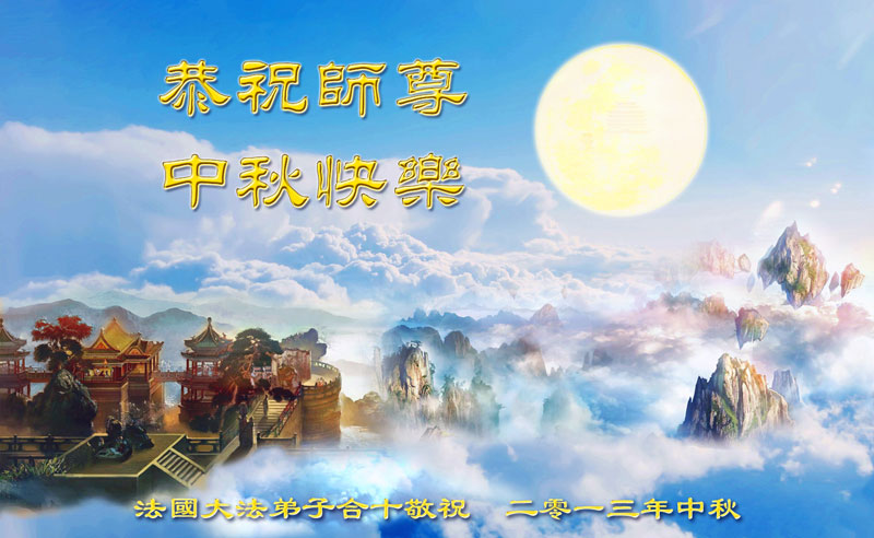 尊敬的师父,您好!一年一度的中秋佳节再度来临了。法国大法弟子在这象征阖家团聚的节日里向慈悲伟大的师父问好!