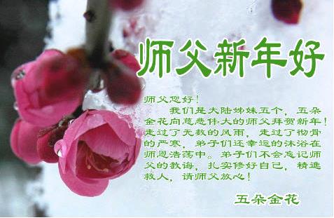 我代表学法小组其他三位同修恭祝师尊元旦快乐!