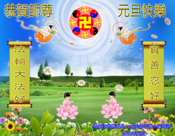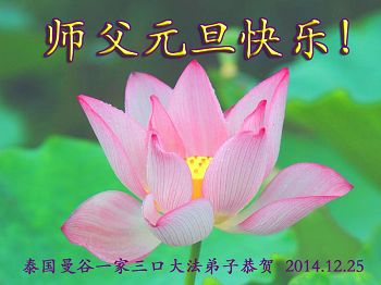 师尊您好!弟子携全家共四位大法弟子叩拜师尊!弟子一定在2015年新的一年修炼如初,共同精進,多救众生,做到:用心、救人、修炼。让师尊多一些欣慰。