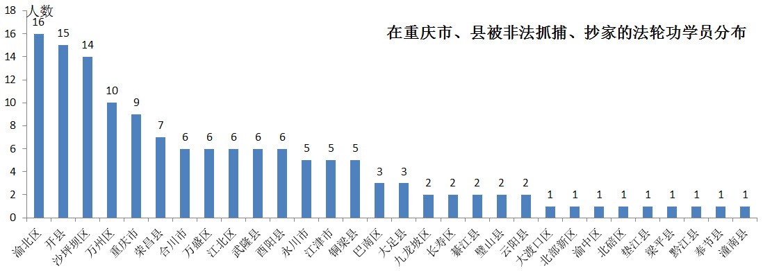 【明慧网二零一五年一月二十三日】(明慧网通讯员重庆报道)据不完全统计,二零一四年,重庆当局迫害法轮功学员的案例有299起。其中,有5位法轮功学员被迫害致死;141位法轮功学员被绑架、非法抄家;68人被强迫洗脑;46人被骚扰;27人被非法庭审、判刑;10人被迫流离失所与失踪;2人被强行灌毒药及超期羁押。绝大部份法轮功学员的家都遭到了警察的抢劫。