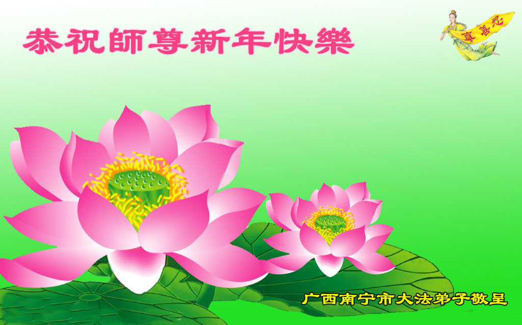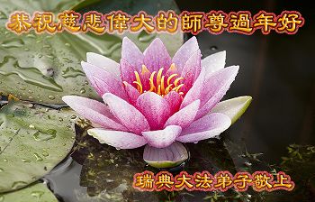 请慈悲伟大的师尊放心:在新的一年里,大法弟子一定多学法,走好、走正最后的路,修好自己,揭露迫害、扎扎实实的做好三件事,多救人,完成使命,兑现誓约,圆满回归。盼神韵到大陆演出,普天同庆,迎请师尊回国。