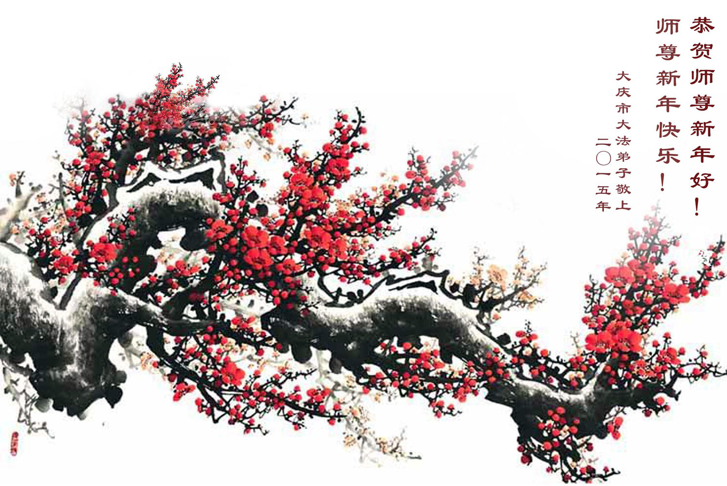 乙未年到来,中国大陆国税系统退休大法弟子向慈悲伟大的李洪志师父拜年! 恭祝师父新年快乐!