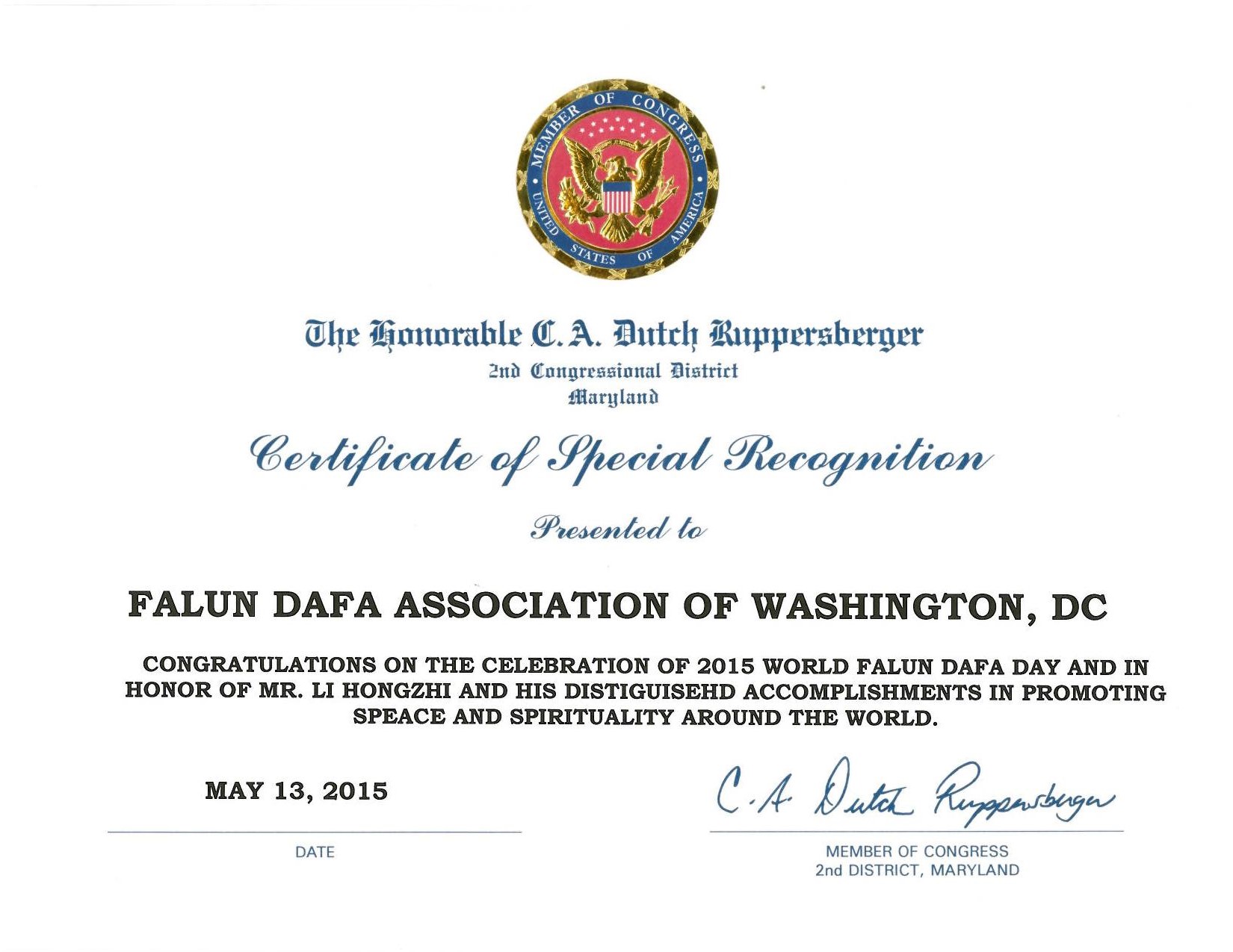 ![]() 马里兰州众议员鲁珀斯伯格的褒奖状 |