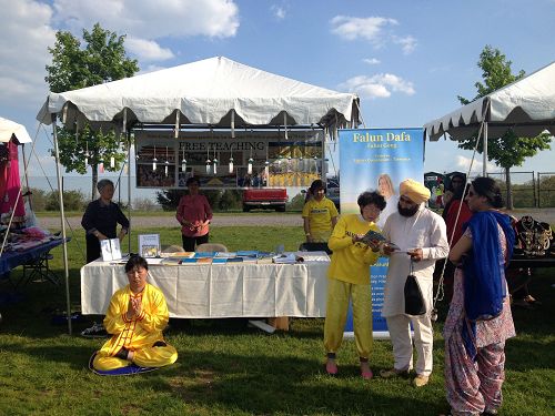 ![]() 法轮功学员向印度族裔介绍法轮功 |