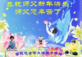 在新的一年到来之日,我们这些老年大法弟子及其家人向您慈悲伟大的师尊拜年!恭祝师父新年好!