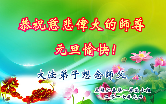 在二零一七年新年即将到来之际,我们怀着无限感恩的心情,向慈悲伟大的师尊致以新年的问候!师尊您好!师尊辛苦了!在新的一年里,在师尊以巨大的承受换来的宝贵时间里,弟子们决心多学法,静心学法,读懂法,用法来归正自己的一思一念、一言一行,时时事事向内找,去掉还未修去的人心、观念、执着,脚踏实地、踏踏实实做好三件事,多救世人,兑现自己的誓约,跟师父回家。叩拜师父!