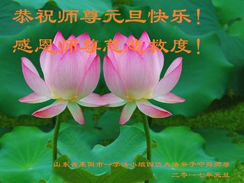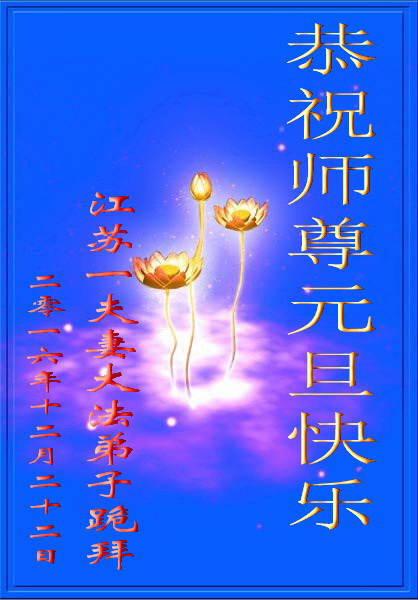 二零一七年即将来临,我向师尊问好!师尊辛苦了!我怀着无限崇敬的心情感恩师尊的苦度!中共邪党对修真、善、忍的法轮功学员实施了最严酷的史无前例的迫害。在迫害中我没有倒下。我在伟大慈悲师尊时时刻刻的呵护下,在风风雨雨中我已修炼了二十年了,我在兑现着正法时期大法弟子救度众生的誓约。在修炼过程中还有许多为名、利、情产生的人的心。请师尊放心,弟子听您的话,走您安排的路,多学法,学好法,遇事向内找,修好自己,做好大法弟子必须做的三件事。弟子盼望师尊早日回中国大陆!盼望神韵早日来中国大陆演出!