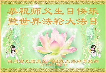 在喜迎世界法轮大法日的同时,也迎来了为弟子和众生承担一切罪业、慈悲伟大的师尊六十五华诞,在此宾县教育系统全体大法弟子恭祝:师尊生日快乐!全球欢庆法轮大法日!弟子感恩师父!