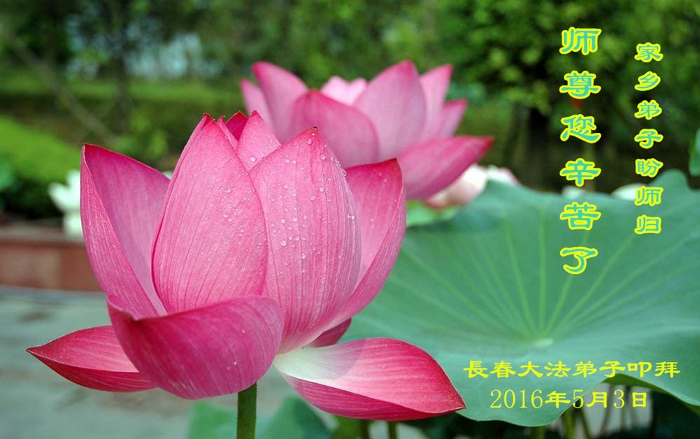 感谢师父救度之恩,弟子们想念师父,盼望师父早日回国。弟子们一定不放松修炼,抓紧讲真相多救人。合十