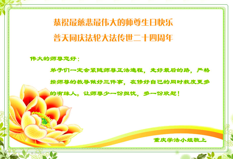 恭祝慈悲伟大的师尊生日快乐!庆祝法轮大法洪传二十四周年!