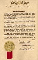 宣告,德克萨斯州参议院对所有的法轮功修炼者表示赞扬,对所有参加庆祝活动的学员致以最诚挚的祝愿。而且,