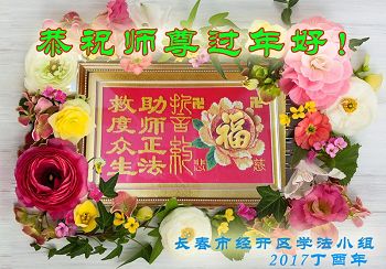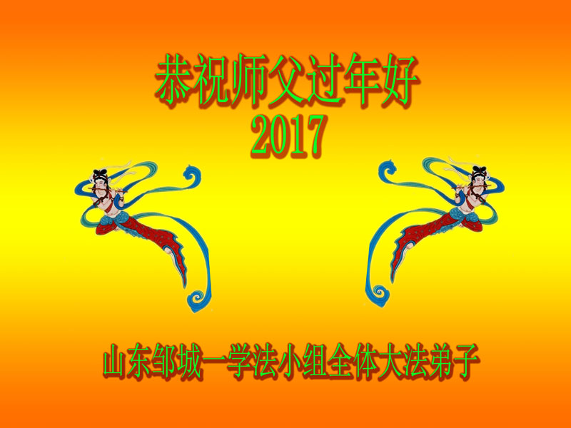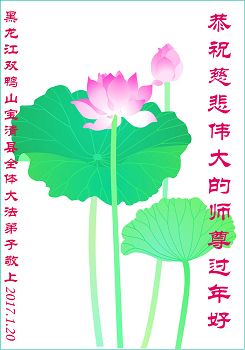 这是吉林省乾安县一学法小组大法弟子们在恭祝师尊2017年新年快乐的贺词,发自内心的表达大法修炼的美好。