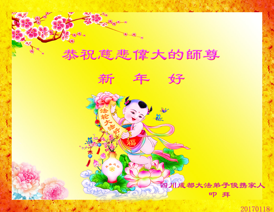 下面是更多的大法弟子用心写给师父的新年贺词、贺卡。