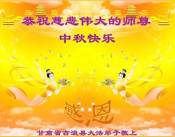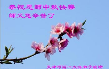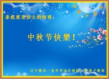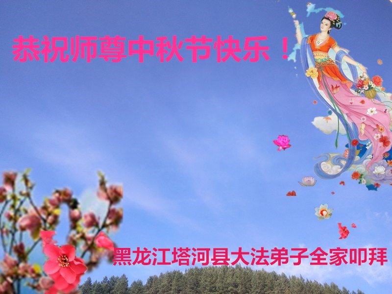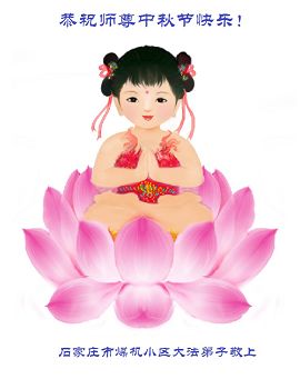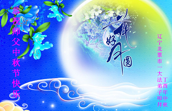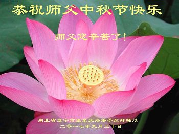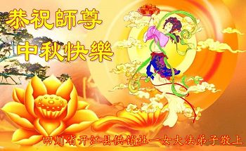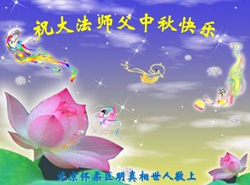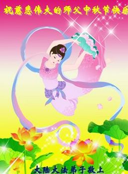 九月份,我从平房上掉下来之时,脑子里闪过九个大字“法轮大法好,真善忍好”瞬间安然无恙,我知道是您在我危难之时救了我,给了我第二次生命,使我又有了平静的生活,我无法报答您的救命之恩,只好借中秋节来临之际,祝慈悲伟大的李洪志大师中秋节快乐,谢谢您给了我这一切。“法轮大法好!真、善、忍好!”