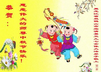 陕西省礼泉县二位明白真相的世人,委托法轮功学员向慈悲伟大的师尊表示节日的问候,敬祝师尊中秋节快乐!