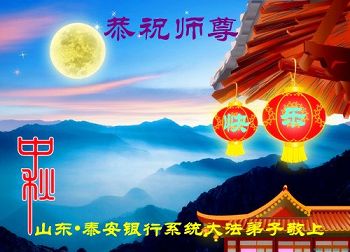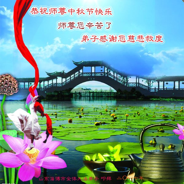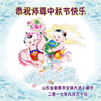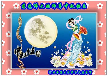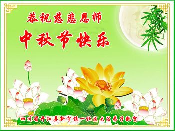 山东省省政府机关大法弟子在中秋节即将来临之际,向慈悲伟大的师尊致以最崇高的敬意和问候。祝师父中秋节快乐!弟子非常想念你,我们将一如既往的在助师世间行的道路上做好三件事,以完成好自己的历史使命,救度众生,再一次的感谢和叩拜师父的慈悲苦度。祝师父中秋节快乐!