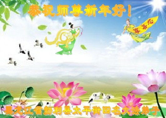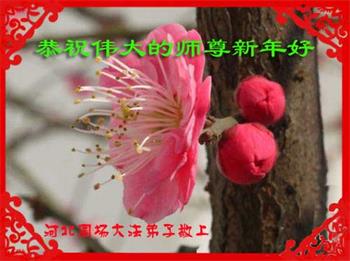 我是黑龙江大庆油田大法弟子的女儿。我知道“法轮大法好”并在大法中受益。我恭祝慈悲伟大的李老师新年好!新年快乐!