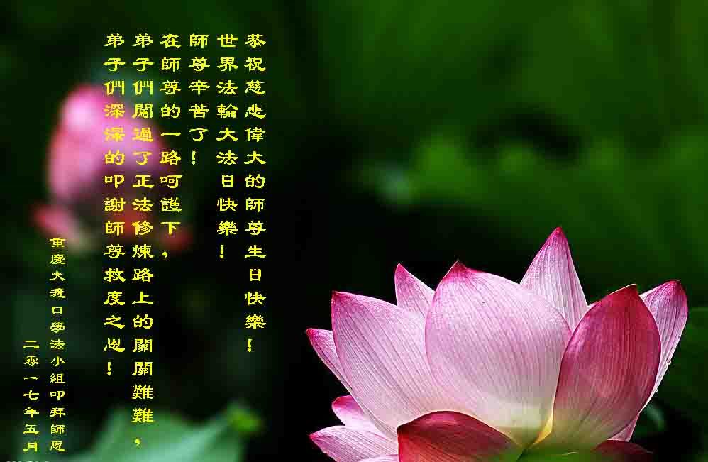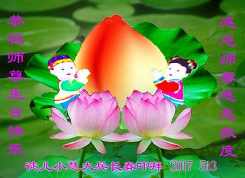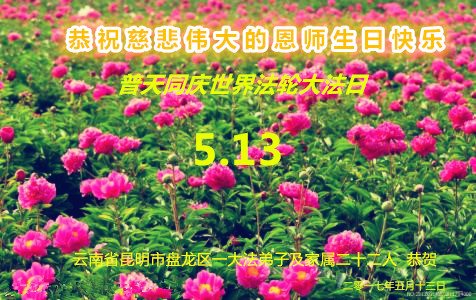 弟子们感谢师尊的慈悲救度!恭祝师尊生日快乐!普天同庆世界法轮大法日!