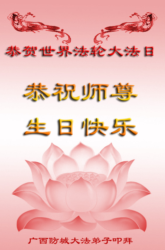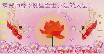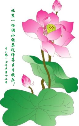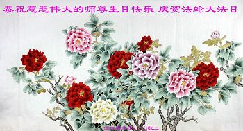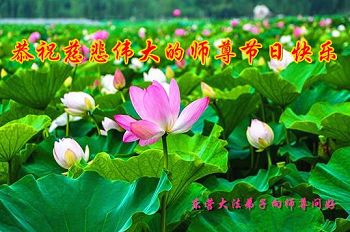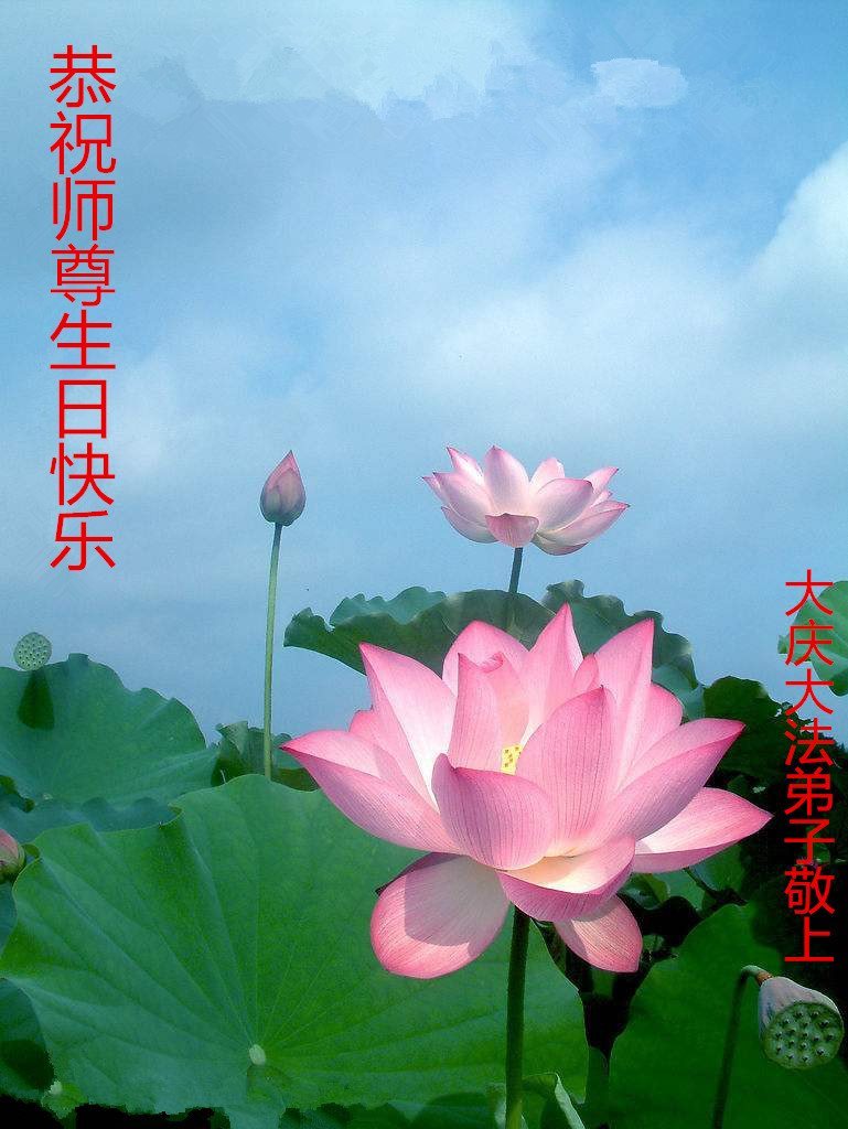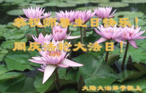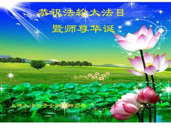 师尊您好!弟子们无法用语言无限感恩师尊的慈悲苦度!叩祝慈悲伟大的师尊生日快乐!并与世界各地各位大法弟子及明真相的世人普天同庆法轮大法洪传二十五周年暨欢庆第十八届世界法轮大法日!