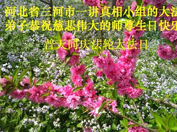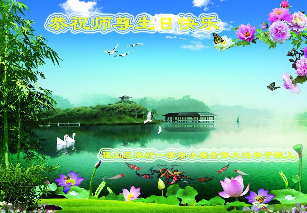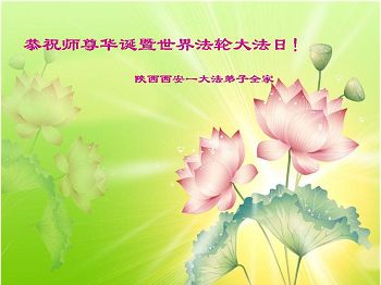 我们学法小组的三位大法弟子是被邪党绑架后,在邪恶的劳教所被迫害时相识的。是师尊的呵护使我们走过了那段日子。值此普天同庆之时,对师尊的感恩无以言表,我们用最虔诚的心恭祝伟大师尊生日快乐!同庆世界法轮大法日!等待师父回国、等待神韵回国演出。