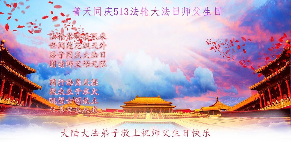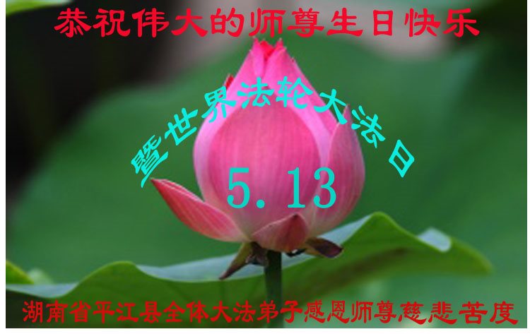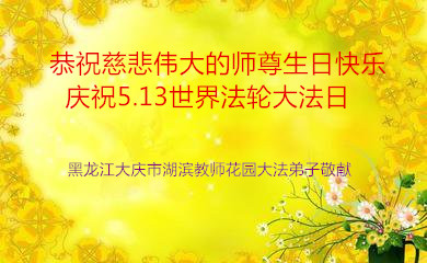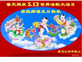 在五月十三日世界法轮大法日来临之际,衷心祝愿李老师生日快乐!法轮大法好!真善忍好!感谢大法洪传!感谢师尊救度之恩!