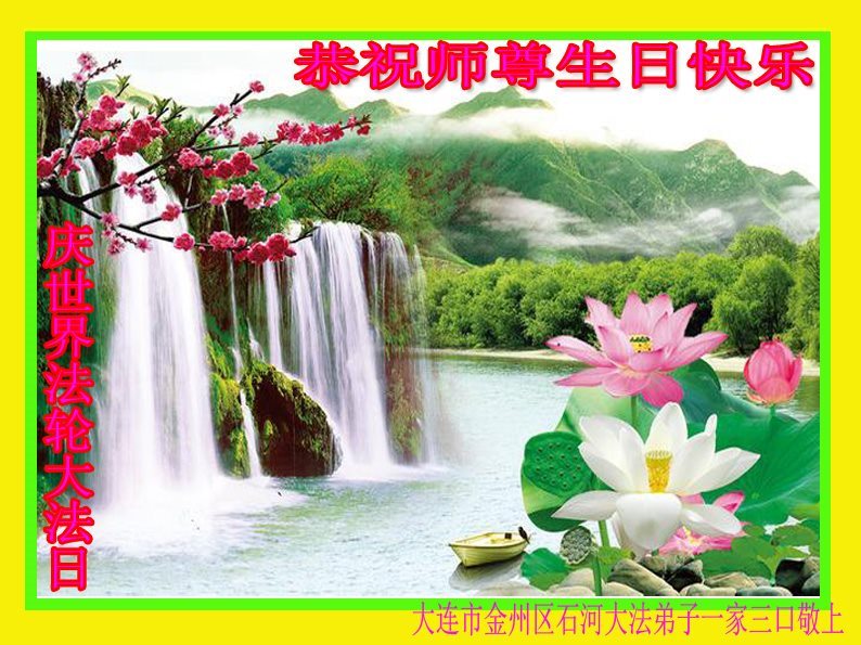 普天同庆世界法轮大法日!清原县大法弟子及明真相的家人们和邻居同修向慈悲伟大的师尊问好!弟子们感谢慈悲伟大的师尊慈悲救度!弟子们跪拜师尊,恭祝慈悲伟大的师尊生日快乐!