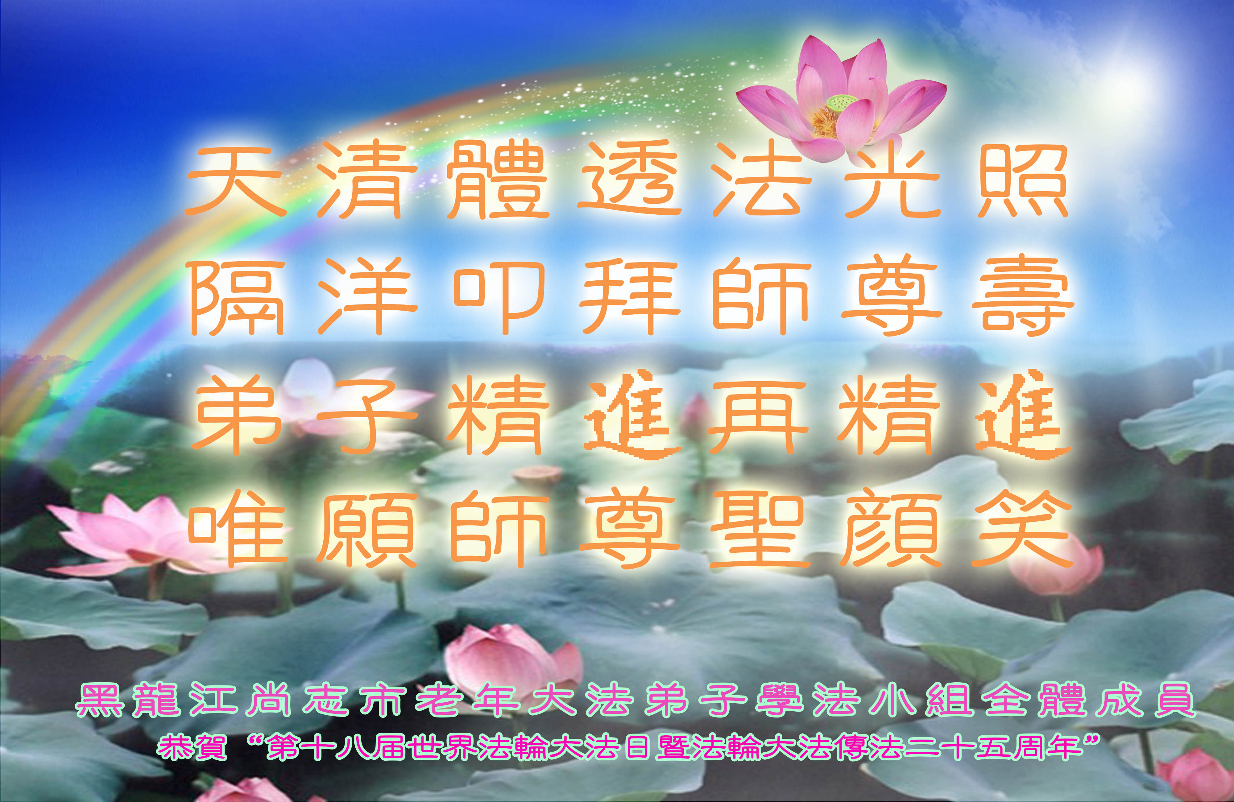 庆祝世界法轮大法日及法轮大法洪传二十五周年!弟子一定努力做好三件事,随师把家还。