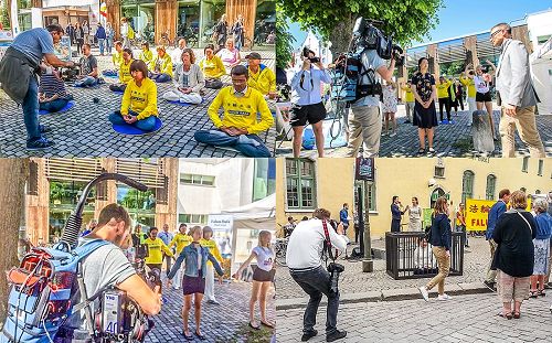 学员们在这里的活动受到了媒体的关注,瑞典国家电视台、瑞典国家电台、瑞典电视24台都分别前来采访了学员和活动现场。今年来参观集会周的瑞典各界人士有四万多人。在活动结束的最后一天,很多明白了真相的人们经过法轮功学员的摊位时,脸上都洋溢着喜悦,面带微笑地说:“感谢你们给这里带来的一切美好。”