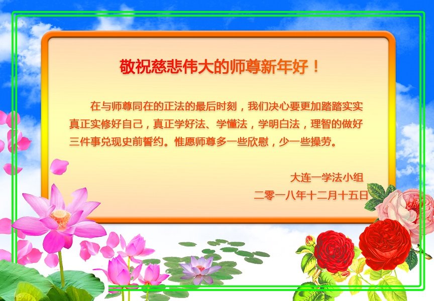 师父的恩德我永远无以报答。能在大法中修炼,我感到无比幸福。新年就要到了。师父,祝您新年好!”